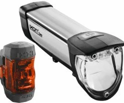 Le kit d’éclairage USB avec homologation StVZO et batteries intégrées se compose d’un feu avant Busch + Müller IXON Core et d’un feu arrière Busch+Müller IXXI.