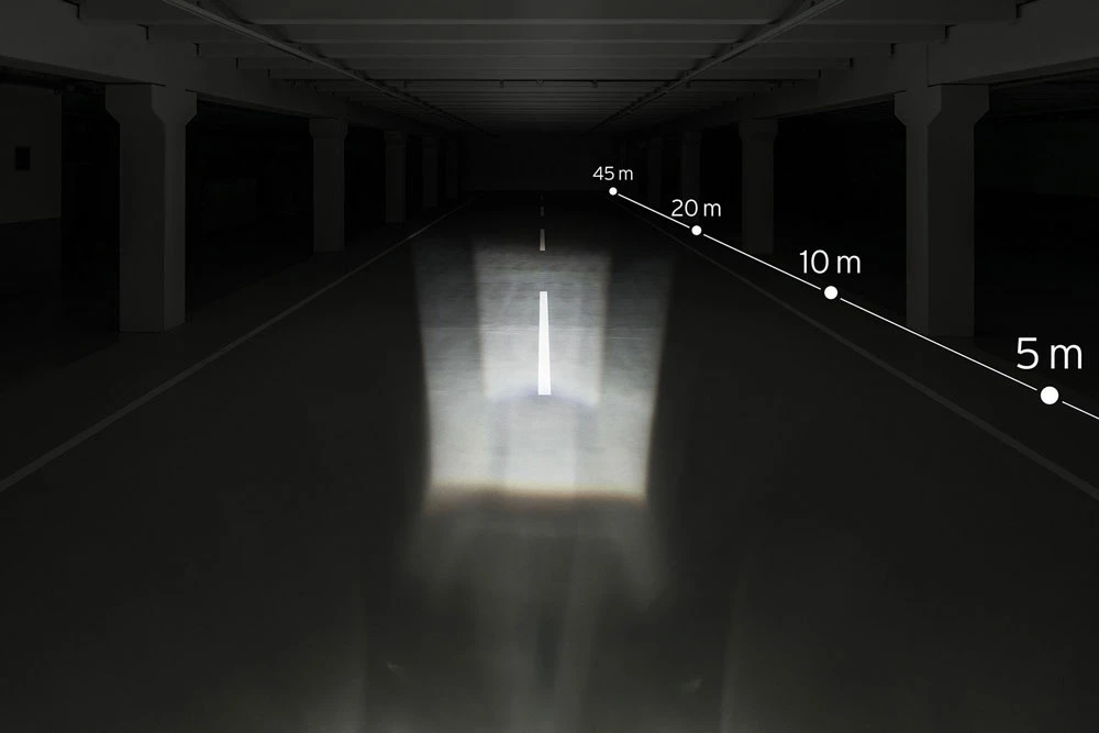 Un système de lentilles conçu par ordinateur répartit la lumière d’une LED haute performance de manière uniforme et sur une grande surface, de sorte que la chaussée est éclairée par un cône de lumière blanc brillant et homogène. Le LUMOTEC Lyt atteint ainsi une efficacité lumineuse d’environ 25 lux. La lumière dans le champ proche augmente en outre la sécurité. De plus, le LUMOTEC Lyt se présente sous un design compact et attractif, dans lequel le catadioptre avant prescrit en Allemagne a déjà été intégré.