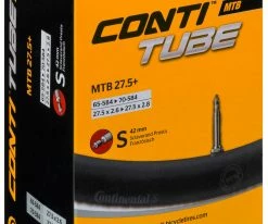 La chambre à air MTB 27.5+ convainc par son faible poids et sa faible résistance au roulement. Cependant, l’épaisseur réduite de la paroi jusqu’à 0,45 mm augmente également le risque de crevaison par rapport aux chambres à air Standard et Hermetic Plus. En outre, les chambres à air légères doivent être gonflées plus fréquemment. La chambre à air MTB 27.5+ avec valve Sclaverand convient aux vélos de 27.5+ ».