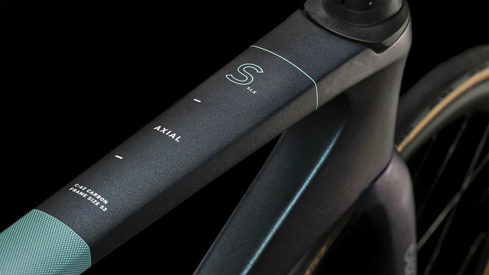 For the Axial WS C:62 SLX CUBE took inspiration from their sleek, high-end road race and time trial bikes to make a frame that’s as slippery moving through the air as it is good to look at. But a great all-rounder is light and comfortable too, which is why CUBE finessed the carbon lay-up and used slender stays and careful tube profiling. Semi-integrated cable routing reduces both turbulence and maintenance. And CUBE included a storage box, so you can take food, tools or an extra layer to keep you riding for longer.