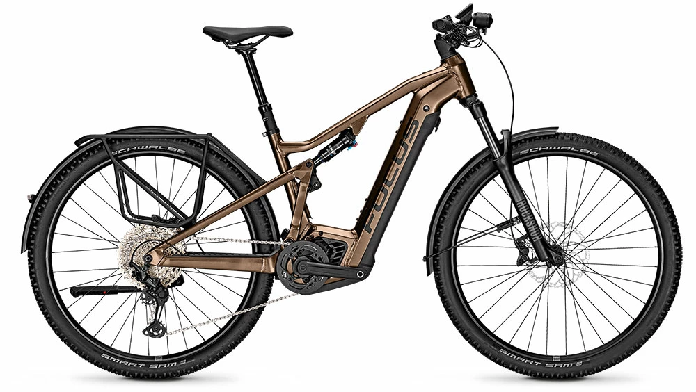 The FOCUS THRON² EQP offers maximum versatility. With 120 mm / 130 mm F.O.L.D. travel and 29″ wheels, the THRON² is at home on the trail and gets even more out of every ride thanks to the Bosch Performance CX (Smart System) e-drive with 750 Wh. With luggage rack, mudguards, kickstand and light, this true touring bike opens up a whole new range of possibilities, from bikepacking to commuting.