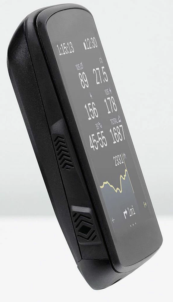 - Normes de capteurs prises en charge : Bluetooth (par ex. capteur de fréquence cardiaque/poitrine et/ou capteur de cadence en option, non inclus), ANT+, Smart Trainer, Campagnolo EPS, Varia Radar, Shimano Di2, SRAM eTap