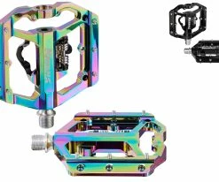 Les pédales combinées légères Katana X-Blade Twin ont un corps en aluminium 6061 usiné CNC et offrent un confort maximal avec ou sans clic. Que ce soit en tant que pédale de plateforme midsize avec 10 pins Evo ou avec la fixation click fiable et compatible SPD : Avec les pédales X-Blade Twin, tu apportes la puissance nécessaire sur la route ou les chemins forestiers. La technique de roulement de haute qualité dont sont équipées ces pédales combinées garantit une longue durée de fonctionnement et une transmission optimale de la force.