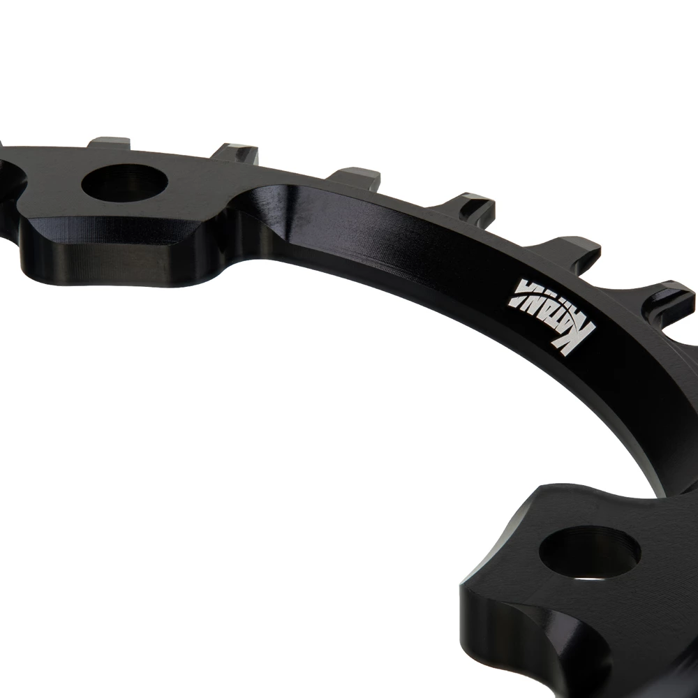 L’entraînement à 1 vitesse pose des exigences élevées au plateau, car la chaîne reste en permanence sur celui-ci. Le plateau Oval Narrow Wide de Katana allie une grande résistance à un poids réduit. Différentes tailles de plateaux te permettent d’équiper ton vélo avec le braquet parfait.