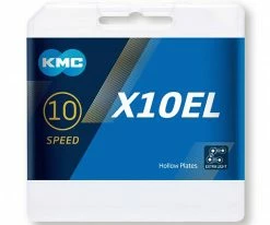 La chaîne super légère X10EL 10 vitesses de KMC, sans sens de rotation et avec une surface nickelée, pour les systèmes de dérailleurs 10 vitesses.