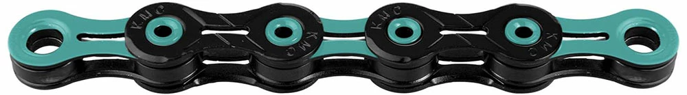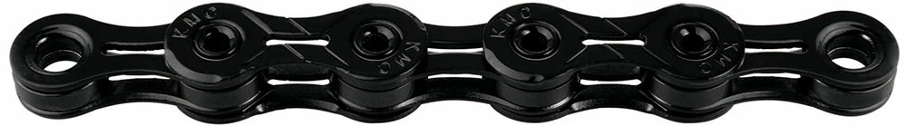 La chaîne super légère X11 DLC 11 vitesses de KMC sans dépendance au sens de marche et avec un revêtement de surface Diamond Like Coating pour les systèmes de changement de vitesse 11 vitesses.