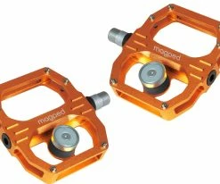 - Technologie : La pédale magped est équipée de 3 roulements étanches de type industriel de haute qualité. Les axes peuvent être échangés si nécessaire. L’aimant en néodyme haute performance est réglable au moyen d’une unité d’amortissement en polymère intégrée.