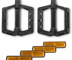 Les robustes pédales Cube RFR Flat HQP Race avec réflecteurs intégrés sont fabriquées en plastique solide et offrent une excellente adhérence grâce aux pins anti-slip intégrés.