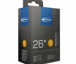 La chambre à air DV 13 de Schwalbe avec valve Dunlop convient aux VTT 26″ avec des pneus de 1,50″ à 2,50″ de largeur.