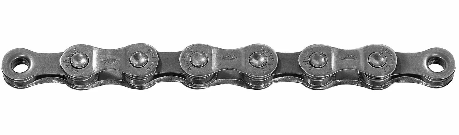 La chaîne SunRace CNM94 9 vitesses durable avec 116 maillons pour les systèmes de dérailleurs Sram/Shimano 9 vitesses.