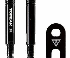 Les Valve Extenders de Topeak ont une longueur de 28 mm et sont fabriqués dans un alliage d’aluminium durable. Ils permettent d’allonger facilement les valves Presta en deux parties pour faciliter l’accès à la valve avec la pompe. L’outil correspondant sert à serrer ou à retirer les extensions de valve.